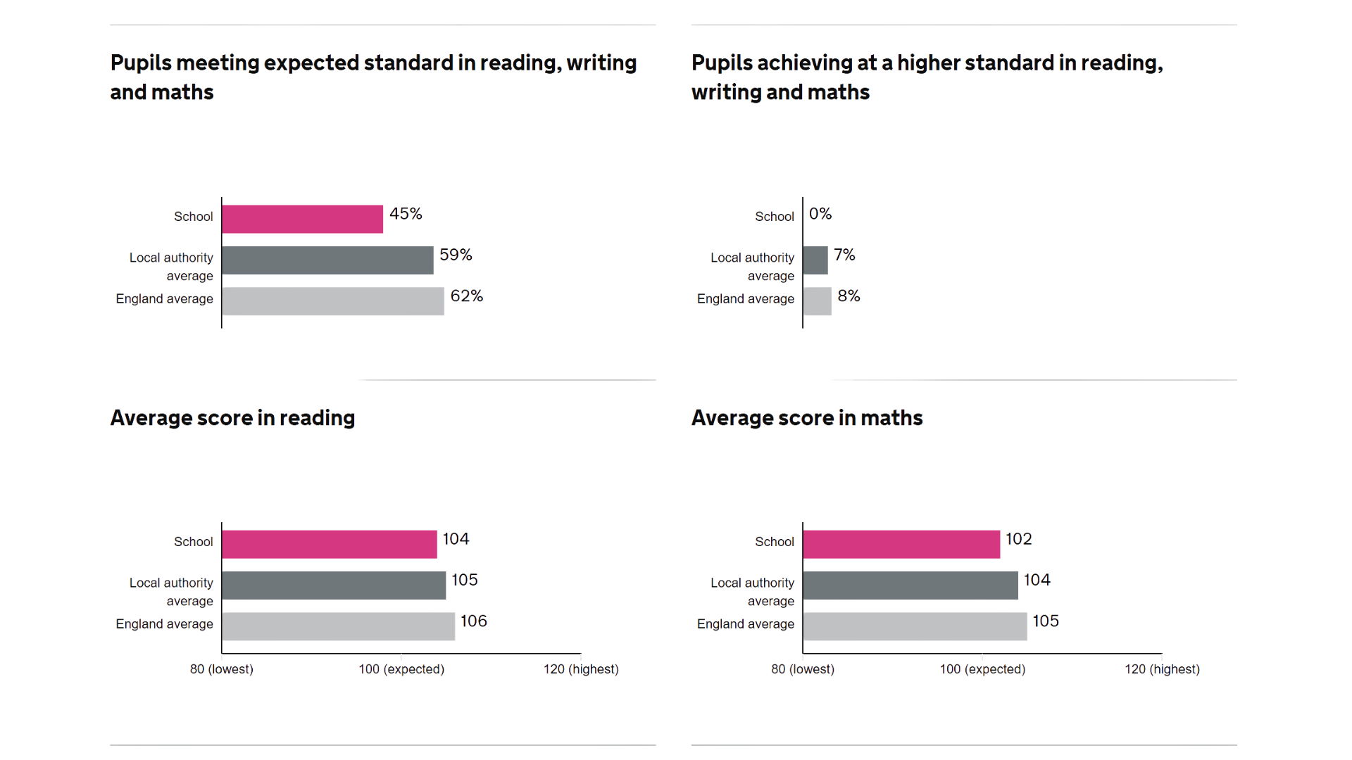 In the Key Stage 2 SATs tests at the end of Year 6, in Reading and Maths children are awarded a scaled score, where 100 indicates the expected standard and 110 indicates a high level of attainment. Writing continues to be teacher assessed and children aim to acquire the expected standard, or greater depth outcomes.